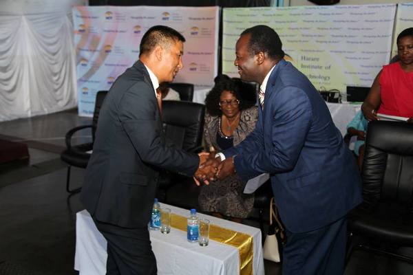 ITEC DAY(24.02.2017)-Ambassador and Vice Chancellor of Harare Institute of Technology exchanging greetings