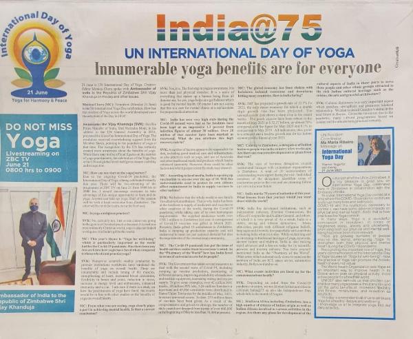 > - Embassy of India, Harare, celebrated International Day of Yoga 2021 which was telecast on ZBC. Embassy also published a supplement on Yoga