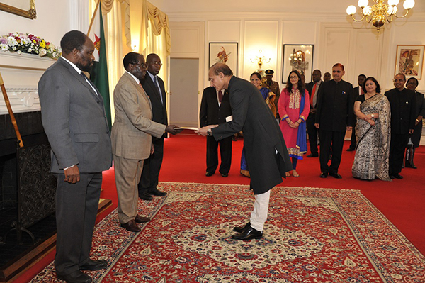Mr. Surinder K. Datta Ambassador presenting his credentials to H.E. Mr. Robert Gabriel Mugabe, President of the Republic of Zimbabwe